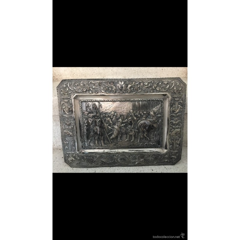 RENDICIÓN DE BREDA. BANDEJA REPUJADA DE COBRE Y BAÑO DE PLATA.